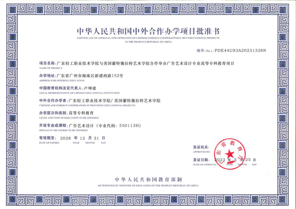 广告艺术设计专业合作办学项目批准书